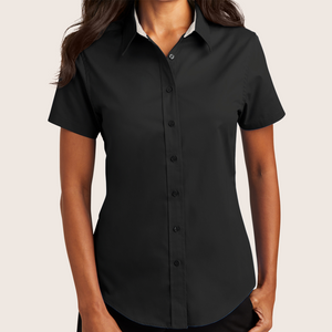 Pinstripes Black Ladies Short Sleeve Easy Care Shirt