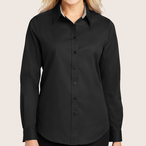 Pinstripes Black Ladies Long Sleeve Easy Care Shirt